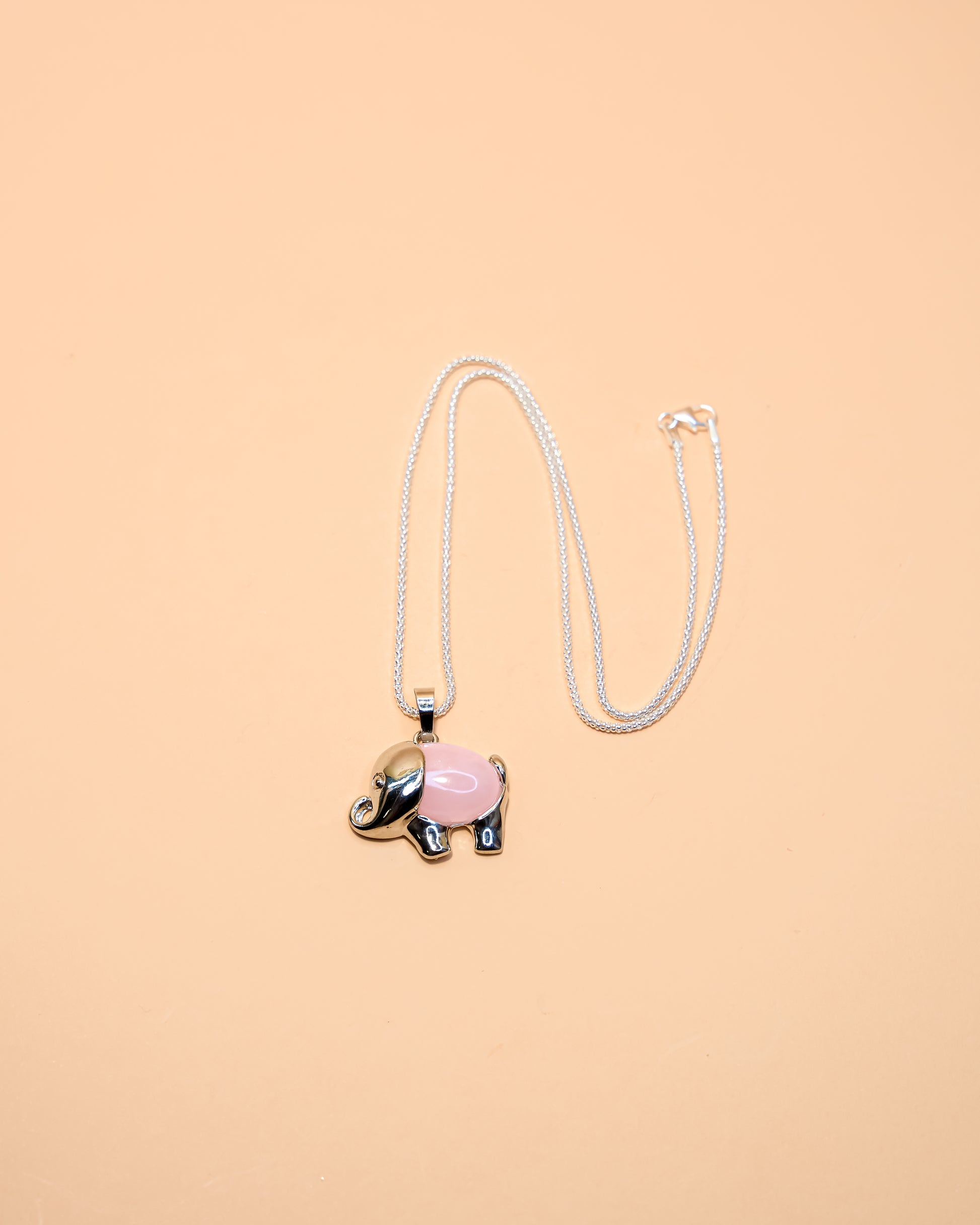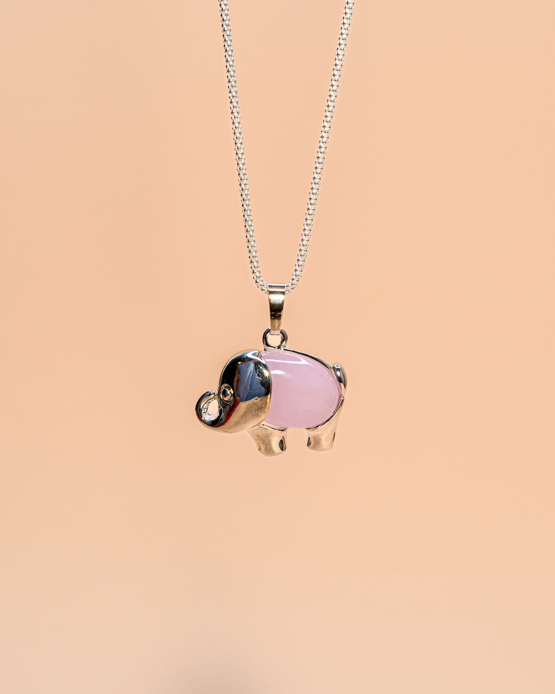 ELEPHANT PENDANT WITH ROSE QUARTZ AND SILVER CHAIN