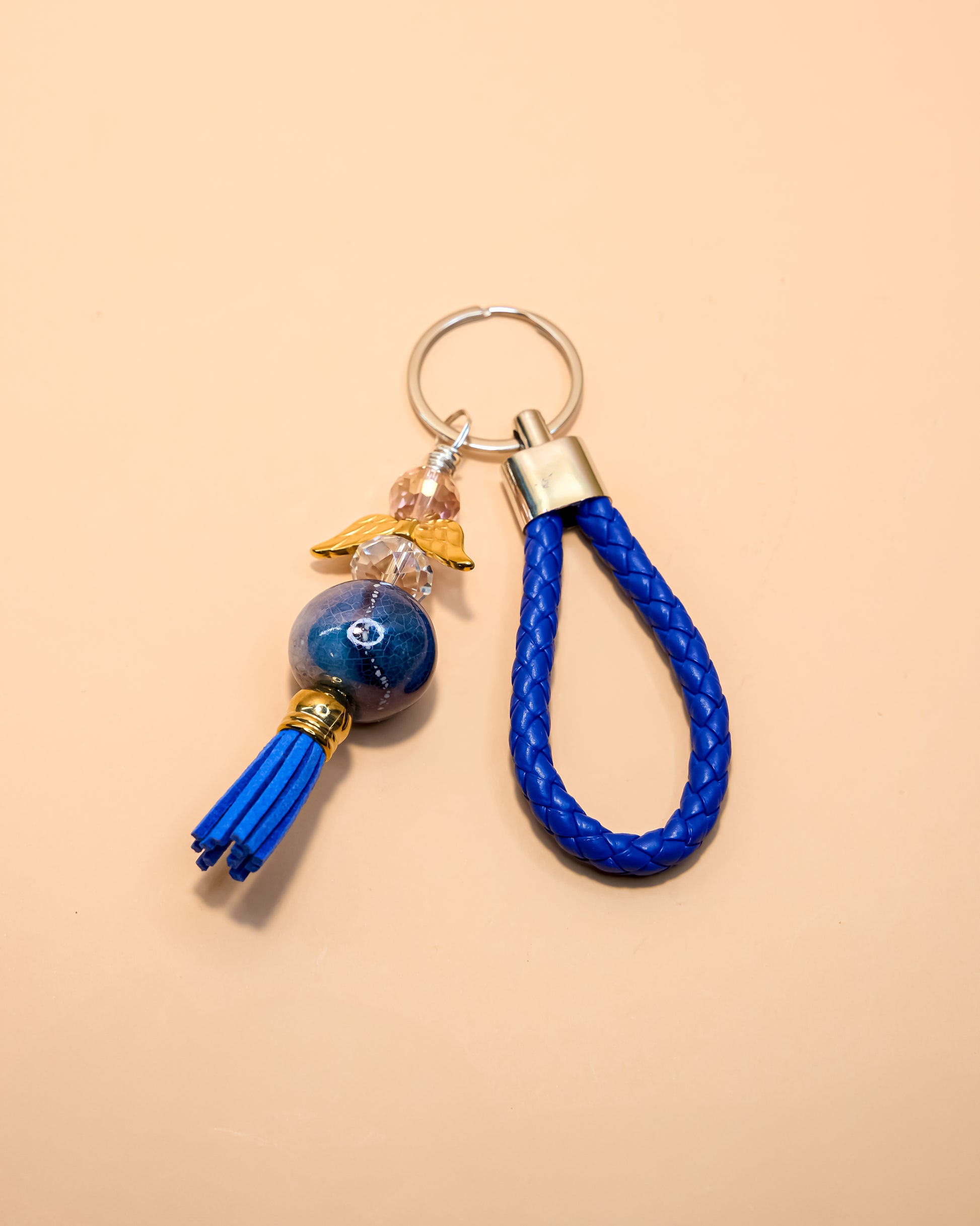 Un dulce símbolo de protección y guía. Este encantador llavero con forma de ángel y bola de cerámica es ideal para llevar contigo una energía amorosa y protectora en todo momento.