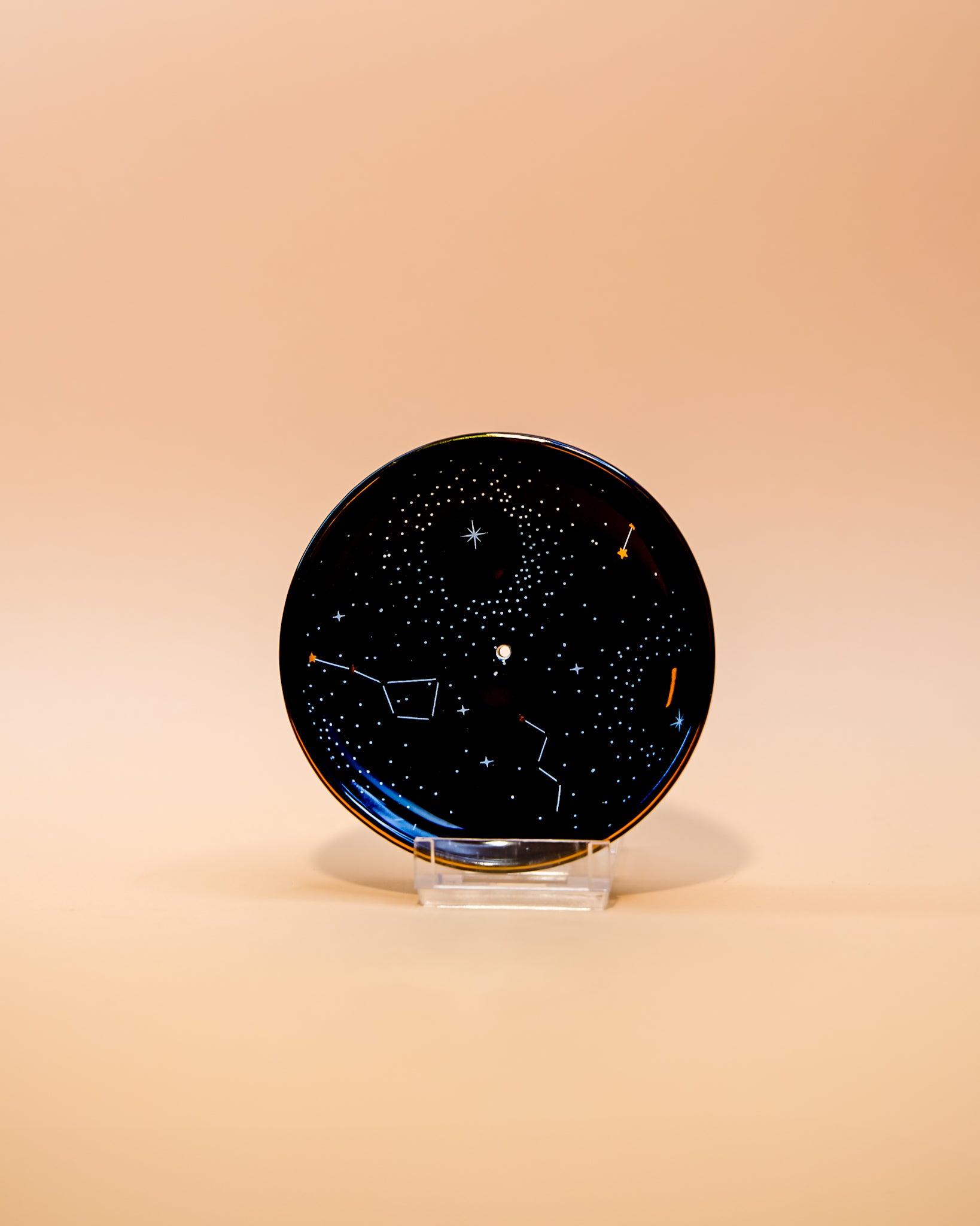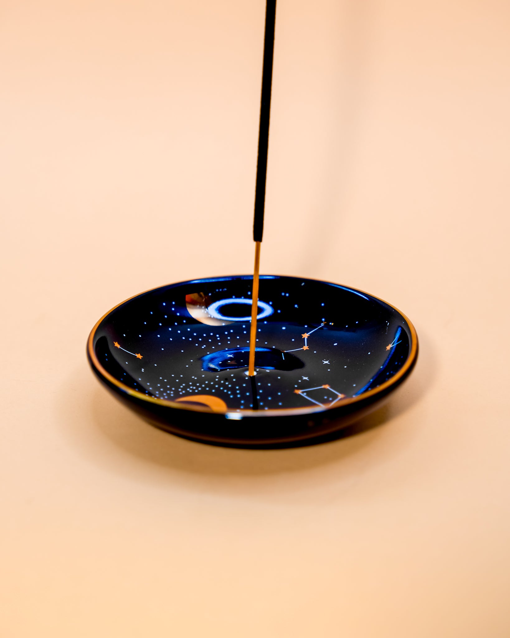 PORTA INCIENSO DE CONSTELACIONES Este sofisticado porta incienso está elaborado en cerámica de alta calidad con precisos patrones de constelaciones celestes grabados en su superficie. La cerámica proporciona una resistencia térmica óptima y una base estable para sus varillas de incienso, mientras añade un elemento decorativo astronómico a su espacio. Ideal para sesiones de meditación, prácticas espirituales o como pieza central en cualquier ambiente que busque una conexión con la energía cósmica.