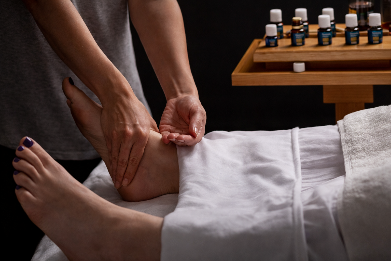 aceites con técnicas de masaje en pies y columna