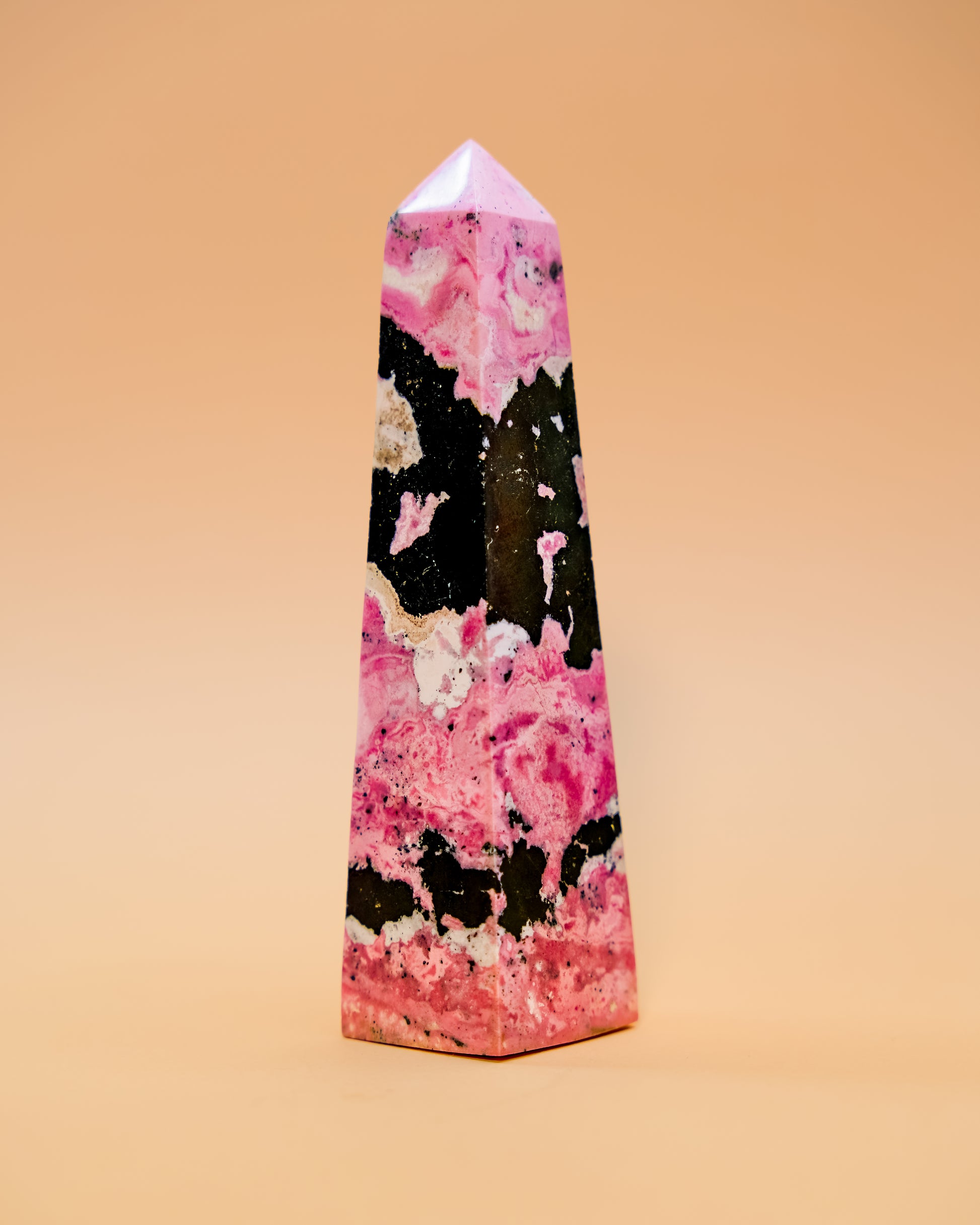 OBELISCO DE RODONITA: Ideal para colocar en tu escritorio de trabajo o mesa de noche. Esta presentación suma la magia oculta del obelisco con las propiedades de la rodonita. Esta piedra está relacionada con el chakra del corazón, muy apreciada en la antigüedad, se consideraba protectora, los romanos y griegos la llevaban en sus viajes, los joyeros de los zares de Rusia la utilizaban mucho.