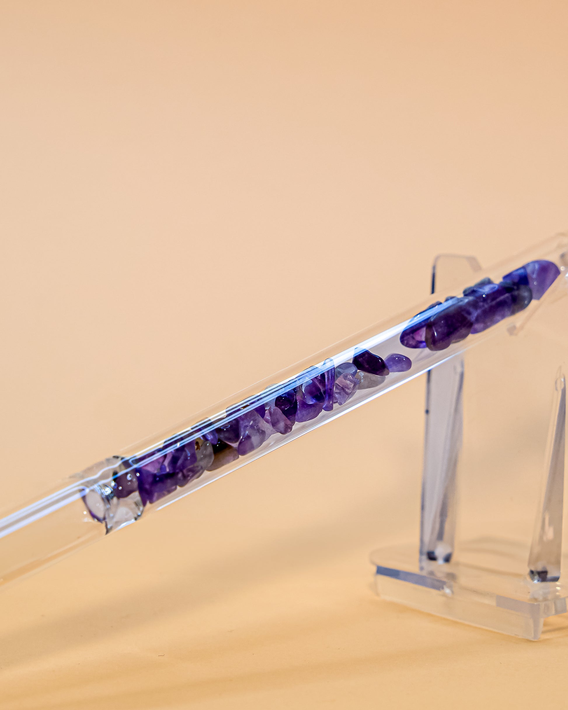 Pajita purificadora de amatista. Diseñado para elevar la frecuencia vibratoria del agua que ingerimos, por tanto también la nuestra y nuestra conciencia.